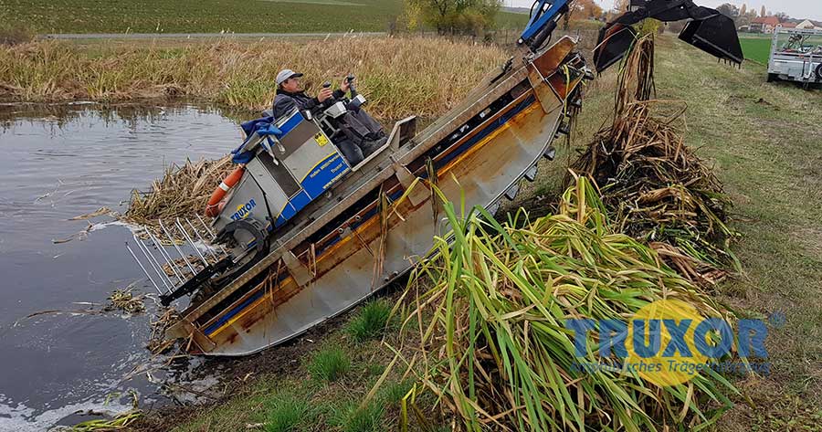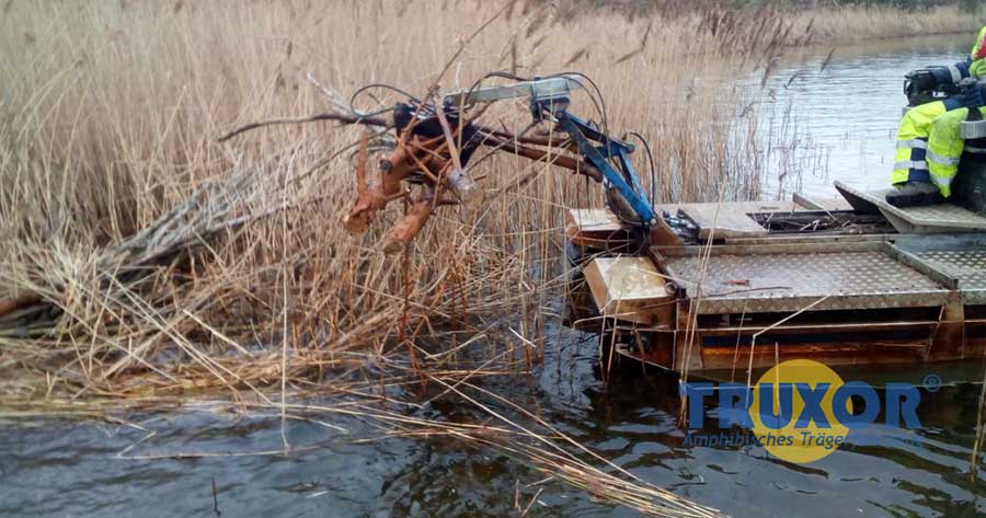 Die Klappschaufel und der Greifer dienen zum Heben von Pflanzen und Sediment vom Gewässergrund oder am Ufer. Die Geräte werden mit einem Teleskoparm oder einer mechanischen Halterung kombiniert. Mit dem Teleskoparm erreicht das Gerät eine Arbeitstiefe von 1,7 m.
