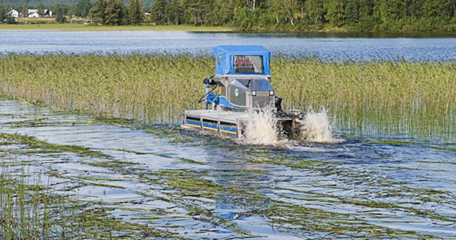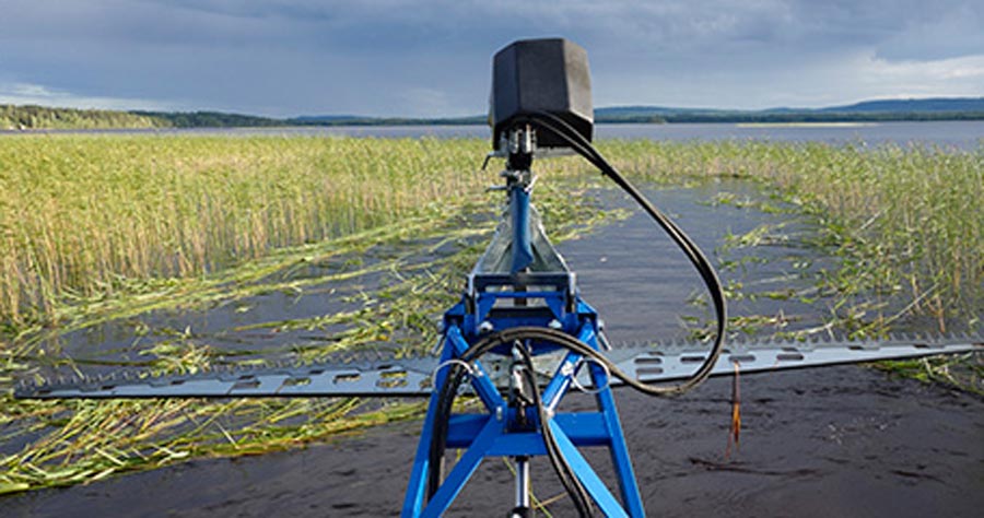 Der Doromäher 3090 ist für Schilfmäharbeiten in den meisten Gewässern die optimale Wahl. Das Schneidwerk wird hydraulisch betrieben und lässt sich einfach an die Gerätekupplung des Truxor’s anschließen. Die Mähtiefe beträgt 1 m. Die Messer sind auswechselbar und die Arbeitsbreite kann je nach Messersatz von 2,4 mbis max. 4 m eingestellt werden. Das Schneidwerk benötigt während des Betreibens Wasser als Schmiermittel und ist daher nicht für die Anwendung an Land geeignet. Ein Bruchschutzsystem verhindert die Beschädigung der Messer durch feste Objekte. Der Doromäher 3091 ist dasselbe Mähermodell, jedoch mit einer Mähtiefe von 1,4 m.